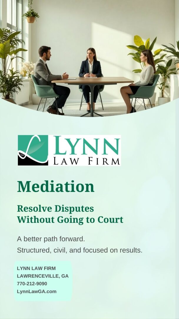 Resolve disputes with confidence. Lynn Law Firm guides you through mediation to achieve real solutions, without court delays. 📞 770 212 9090 🌐 www.lynnlawga.com #LynnLawFirm #Mediation #FamilyLaw #GeorgiaLaw #DisputeResolution #LegalServices #LawrencevilleGA
